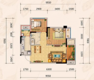 [北大资源江山名门]二期E组团2幢标准层H1户型 89.94㎡ 户型方正 毛坯 期房 市场价:55.58万元 54.48万元